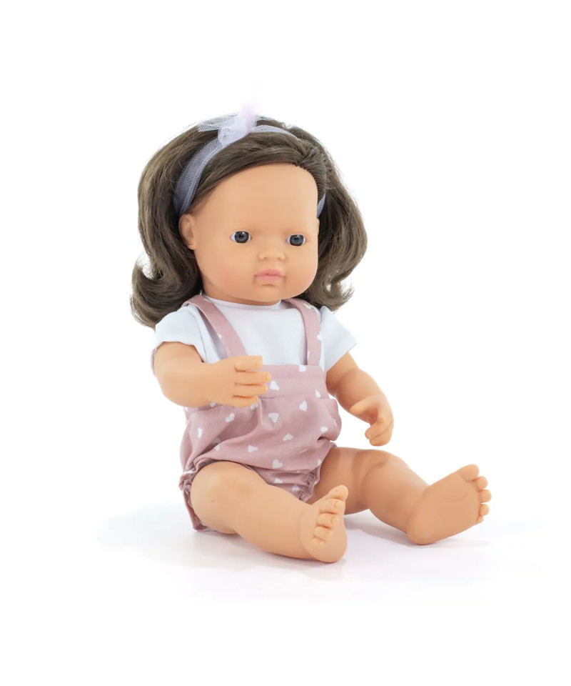 Discover the world of friendship! The My Friends & Me 15" Baby Doll Brunette girl is a valuable member of Miniland's collection of Dolls. Each doll comes with an art & craft proposal that includes cut-out friendship bracelets that can be personalized with stickers, as well as friendship cards to give to best friends. Miniland's My Friends & Me collection is distinguished by its commitment to diversity and tolerance, teaching children to value and respect differences from a young age. An excellent example of inclusion and education through play, helping children to understand and appreciate diversity in human abilities. Doll and accessories comply with all toy safety regulations. Made in Spain by Miniland, this doll is made of high quality soft vinyl and scented with a light vanilla aroma, offering a unique sensory experience. Let little ones explore the world of friendship and inclusion while having fun!
