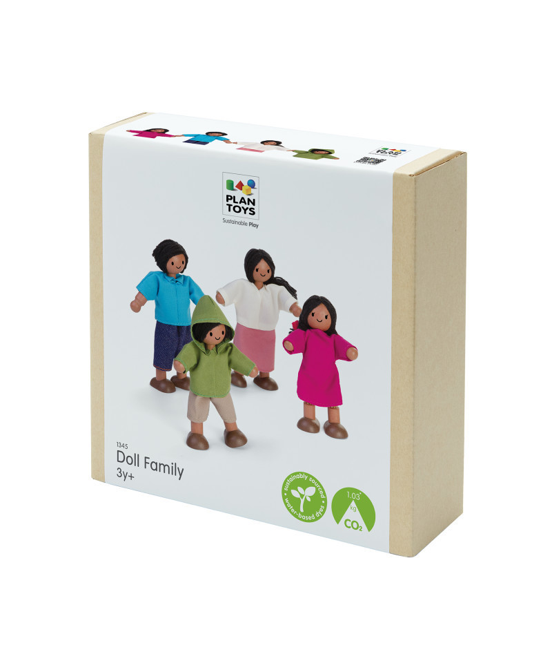 Bring diversity and creativity to your child’s playtime with the PlanToys Wooden Doll Family in a warm medium skin tone. Perfectly sized at 1:12 scale, these four poseable figures fit seamlessly into PlanToys dollhouses or any action figure play environment. Crafted with wooden heads and bodies, and flexible wire arms and legs, the dolls are easy to pose for imaginative storytelling and role play. This inclusive set includes four figures with medium complexion and dark hair, representing various ages from children to adults, and featuring a mix of pronouns: two with he/him and they/them, and two with she/her and they/them. Made sustainably in Thailand with chemical-free rubberwood, formaldehyde-free glue, organic pigments, and water-based dyes, this doll family promotes eco-friendly, inclusive play.