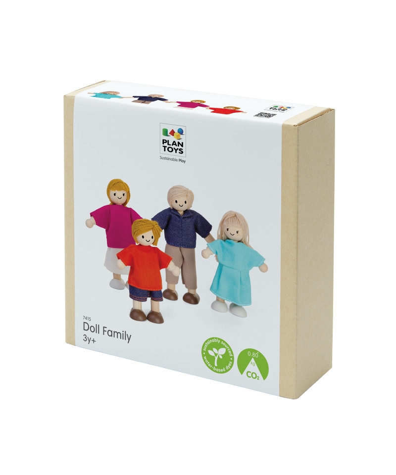 The PlanToys Doll Family with light complexion and blonde or brown hair is an ideal addition to any child’s dollhouse or action figure collection. Designed to a 1:12 scale, these four wooden figures fit perfectly with PlanToys dollhouses and accessories. Each doll features a wooden head and body with flexible wire arms and legs, making them easy to pose and perfect for imaginative play. The set includes a diverse range of ages from child to adult and represents inclusive pronouns—two figures with he/him and they/them, and two with she/her and they/them. Crafted sustainably in Thailand using chemical-free rubberwood, formaldehyde-free glue, organic pigments, and water-based dyes, this doll family encourages eco-friendly and creative play.