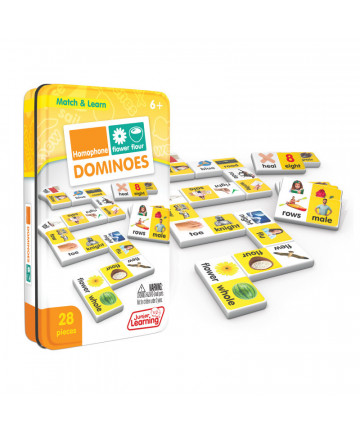 Subtraction dominoes include a 28 piece set on thick plastic dominoes. Dominoes come in a collectors tin for storage. Children will love the feel of real dominoes as they complete the subtraction matching game. Sold as 2 sets.