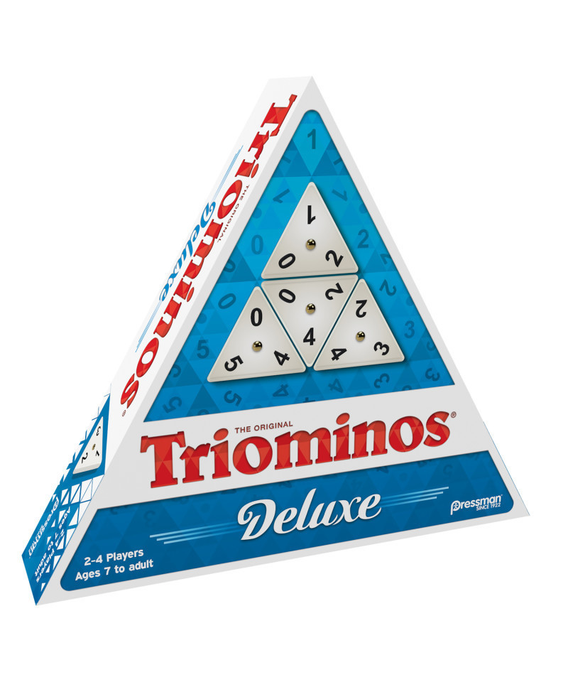The classic triangular domino game! Score points by matching numbers on the three-sided pieces. Contains 56 playing tiles with brass spinners, 4 plastic racks, and complete instructions. For 2 to 4 players, ages 7 and up.