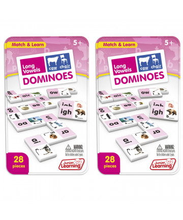 Decoding dominoes include a 28 piece set on thick plastic dominoes. Dominoes come in a collectors tin for storage. Children will love the feel of real dominoes as they complete the decoding matching game.