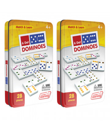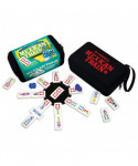 Mexican Train to Go Domino Game. Fun Size Domino Set. 91 Double 12 Fun Size Number Dominoes, 8 Glitter Train Markers and a Mini-Centerpiece make up this great version of Mexican Train! The tiles are smaller, but stand up and handle like larger dominoes, take up less table room, have huge numbers for easy visibility and scoring and come packaged in a fantastic zipper case. For 1-8 players, ages 6 and up.