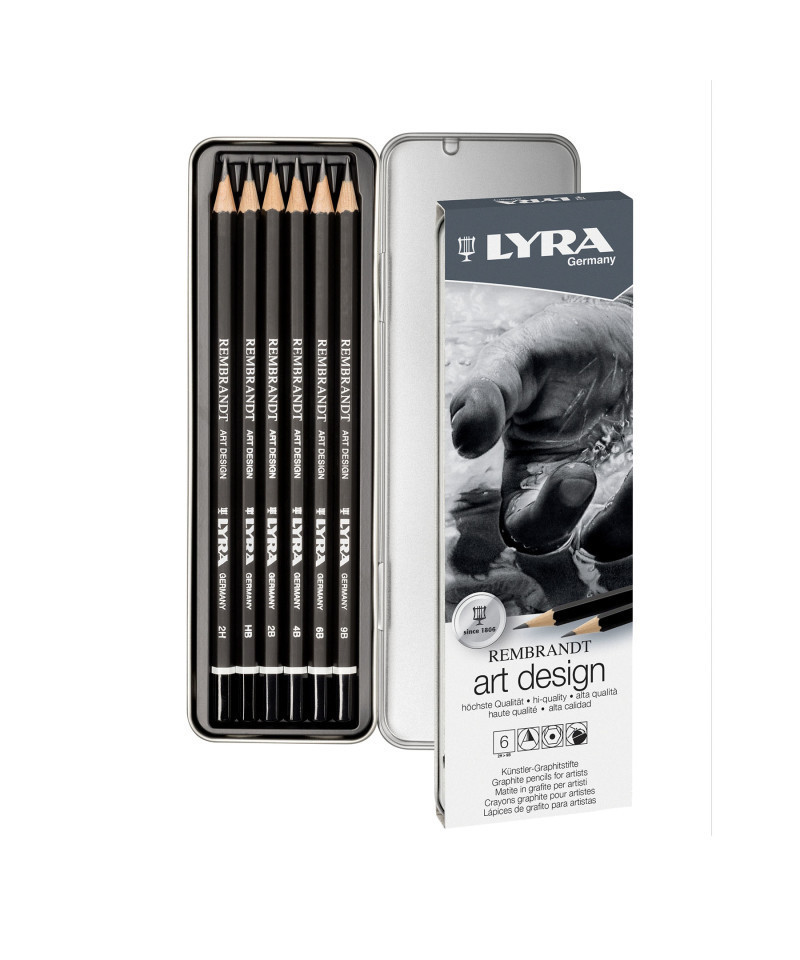 Introducing Lyra Rembrandt Art Design graphite pencils—Experience the unparalleled precision and richness of our pure graphite pencils, meticulously crafted for architects and artists. With expertly milled graphite that ensures a smooth, defined stroke, these pencils offer an array of 17 gradations, from deep, intense blacks to subtle, delicate greys. The luxurious softness of the gradations enhances the natural brilliance of the graphite, while the compact cores deliver impeccable, sharp points for flawless detail and definition in every stroke. Having spent over 200 years providing quality products to artists, schools & offices all over the world, the historic LYRA brand — founded by Johann Froescheis in Nuremberg in 1806 — is one of the oldest pencil companies in the world. Synonymous with innovation & quintessential German quality, Lyra is a well-respected name all over the world. Ever since it produced its first pencils, Lyra has stuck to strict rules to ensure the utmost quality — from the selection of raw materials right through to the manufacturing process. Includes 9B, 6B, 4B, 2B, HB, 2H.