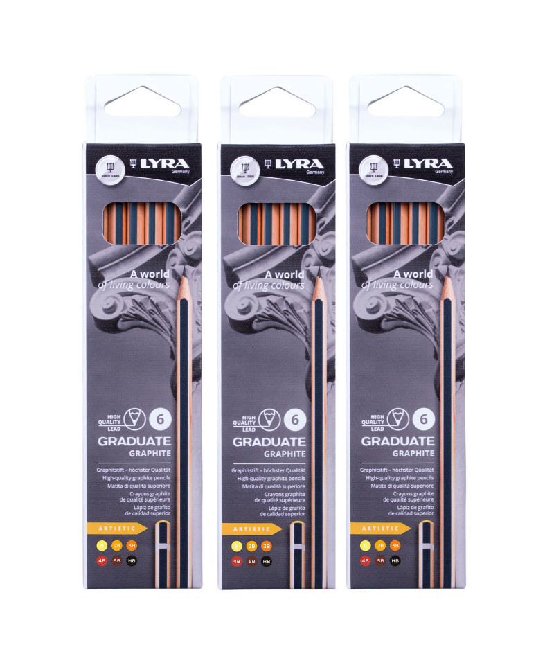 Lyra Graduate Graphite Pencils offer a perfect balance of smoothness and precision, ideal for sketching, shading, and detailed drawing. Their high-quality graphite ensures consistent, rich tones, allowing students to explore a full range of artistic techniques with ease. Durable and easy to sharpen, these pencils are essential for both classroom creativity and honing skills at home, delivering professional results every time. Having spent over 200 years providing quality products to artists, schools & offices all over the world, the historic LYRA brand — founded by Johann Froescheis in Nuremberg in 1806 — is one of the oldest pencil companies in the world. Synonymous with innovation & quintessential German quality, Lyra is a well-respected name all over the world. Ever since it produced its first pencils, Lyra has stuck to strict rules to ensure the utmost quality — from the selection of raw materials right through to the manufacturing process. The Graduate product line is a premier collaboration between three renowned art supply brands—Canson, Lyra, and Daler-Rowney—offering a comprehensive range of high-quality art materials. Featuring an array of supplies including sketchbooks, pencils, and paints, each product is designed to enhance technical skill and artistic expression. Ideal for art students and teachers alike, the Graduate range provides the tools necessary for fostering creativity in the classroom. Each set includes 6 pencils. Sold as 3 sets for a total of 18 pencils.