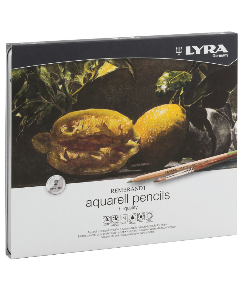 Introducing Lyra Rembrandt Aquarell watercolor pencils—These premium water-soluble colored pencils transform your drawings into vivid, vibrant works of art with a touch of water, offering rich shading and hazy effects that evoke the fluid beauty of watercolors. Crafted with high-quality pigments that dissolve effortlessly, these pencils are a top-tier professional tool, ideal for bringing your artistic visions to life. Encased in a genuine hexagonal cedar wood body, certified by Italy's PEFC, the Aquarell pencils feature a 3.7 mm lead with exceptional UV-resistant pigments, delivering bold, brilliant colors that blend seamlessly and offer endless creative possibilities, whether applied dry or with water for remarkable transparency and depth. Having spent over 200 years providing quality products to artists, schools & offices all over the world, the historic LYRA brand — founded by Johann Froescheis in Nuremberg in 1806 — is one of the oldest pencil companies in the world. Synonymous with innovation & quintessential German quality, Lyra is a well-respected name all over the world. Ever since it produced its first pencils, Lyra has stuck to strict rules to ensure the utmost quality — from the selection of raw materials right through to the manufacturing process.