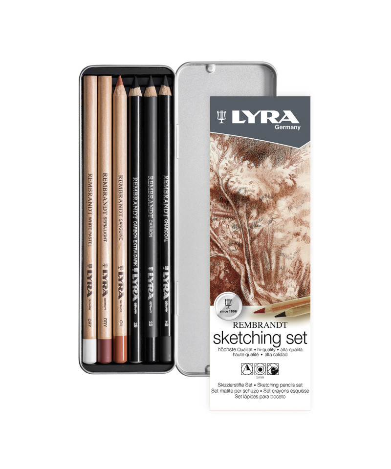 Introducing Lyra Rembrandt Monochrome professional graphite, charcoal, and natural tone pencils. Ideal for both sketching the foundations of a masterpiece and creating polished portraits and landscapes, this range is a must-have for discerning artists. The collection includes Sanguine, Sepia, and Pastel pencils available in both Dry and Oil varieties, expanding your creative possibilities. The Dry pencils are expertly balanced with pigment and binder, allowing for effortless blending and erasing, while the Oil pencils provide a rich, pasty stroke for bold, defined contrasts. With 5mm diameter leads packed with highly concentrated pigments, these pencils deliver deep, intense tones that make your artwork stand out. Having spent over 200 years providing quality products to artists, schools & offices all over the world, the historic LYRA brand — founded by Johann Froescheis in Nuremberg in 1806 — is one of the oldest pencil companies in the world. Synonymous with innovation & quintessential German quality, Lyra is a well-respected name all over the world. Ever since it produced its first pencils, Lyra has stuck to strict rules to ensure the utmost quality — from the selection of raw materials right through to the manufacturing process. Includes Carbon Pencil 2B, Charcoal Pencil Hb, Carbon Extra Dark Pencil 2B, Sanguine Oil Pencil, Sepia Light Dry Pencil, White Pastel Dry Pencil.