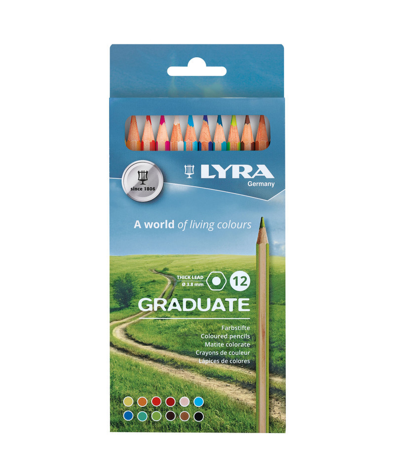 Lyra Graduate Colored Pencils deliver an explosion of vibrant color, perfect for making student artwork pop with brilliance. With their smooth, buttery leads, blending and shading become a breeze, empowering students to experiment with a variety of techniques. Built to last and easy to sharpen, these pencils are a must-have for the classroom and at-home practice, ensuring stunning, professional-quality results with every stroke. Having spent over 200 years providing quality products to artists, schools & offices all over the world, the historic LYRA brand — founded by Johann Froescheis in Nuremberg in 1806 — is one of the oldest pencil companies in the world. Synonymous with innovation & quintessential German quality, Lyra is a well-respected name all over the world.