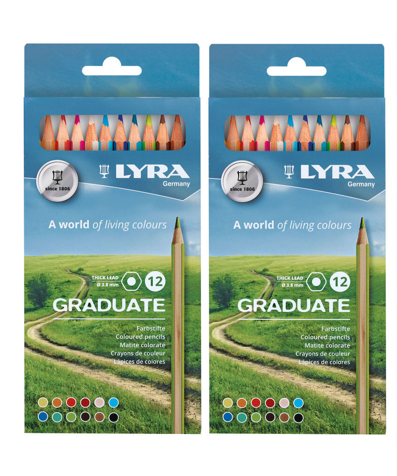 Lyra Graduate Colored Pencils deliver an explosion of vibrant color, perfect for making student artwork pop with brilliance. With their smooth, buttery leads, blending and shading become a breeze, empowering students to experiment with a variety of techniques. Built to last and easy to sharpen, these pencils are a must-have for the classroom and at-home practice, ensuring stunning, professional-quality results with every stroke. Having spent over 200 years providing quality products to artists, schools & offices all over the world, the historic LYRA brand — founded by Johann Froescheis in Nuremberg in 1806 — is one of the oldest pencil companies in the world. Synonymous with innovation & quintessential German quality, Lyra is a well-respected name all over the world. Ever since it produced its first pencils, Lyra has stuck to strict rules to ensure the utmost quality — from the selection of raw materials right through to the manufacturing process. The Graduate product line is a premier collaboration between three renowned art supply brands—Canson, Lyra, and Daler-Rowney—offering a comprehensive range of high-quality art materials. Featuring an array of supplies including sketchbooks, pencils, and paints, each product is designed to enhance technical skill and artistic expression. Ideal for art students and teachers alike, the Graduate range provides the tools necessary for fostering creativity in the classroom. Each set includes 12 pencils. Sold as 2 sets for a total of 24 pencils.