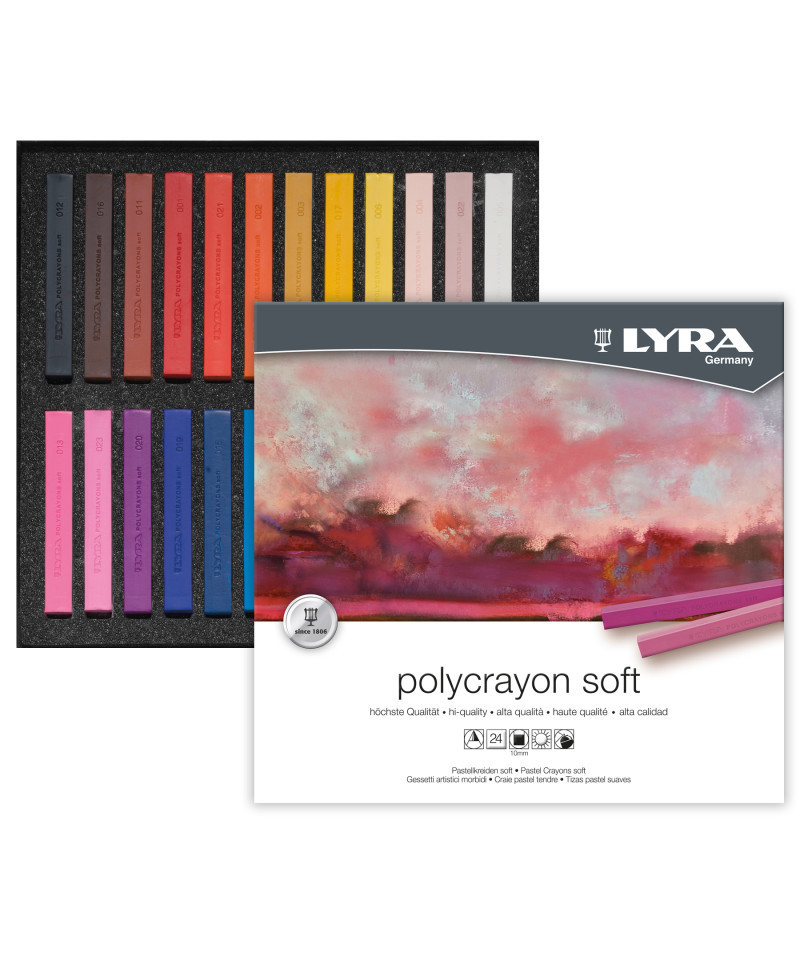 Polycrayon Soft square pastels offer unparalleled versatility, perfect for both precise line work and bold, even strokes when used on their side. Their vibrant pigments deliver strong, luminous color that smudges beautifully and can be easily lifted with a kneaded eraser. With minimal binder, these pastels maintain the purity and brilliance of their color, especially when used on textured paper, and can be secured with a light fixative for lasting vibrancy. Having spent over 200 years providing quality products to artists, schools & offices all over the world, the historic LYRA brand — founded by Johann Froescheis in Nuremberg in 1806 — is one of the oldest pencil companies in the world.