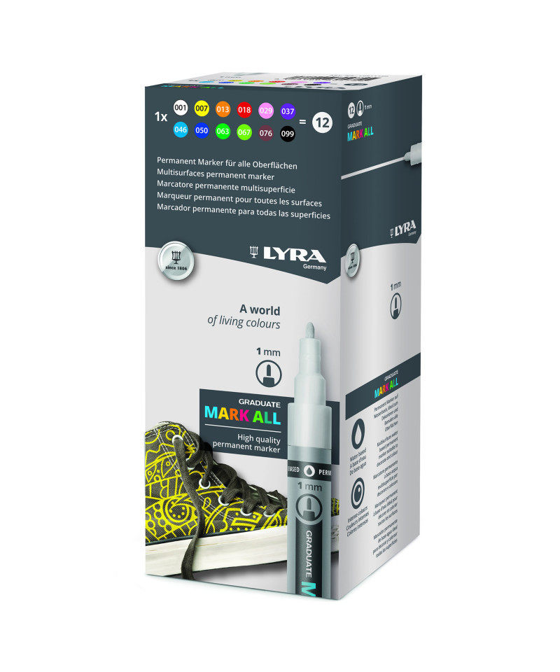 Introducing Lyra Graduate Mark All permanent markers—Vibrant, creative & inspiring markers feature high-quality fiber tips and water-based inks that let you draw on any surface, turning every creation into something truly unique. With a smooth texture and a brilliant matte finish, the quick-drying inks can be layered for endless possibilities and are water and light-resistant. Having spent over 200 years providing quality products to artists, schools & offices all over the world, the historic LYRA brand — founded by Johann Froescheis in Nuremberg in 1806 — is one of the oldest pencil companies in the world. Synonymous with innovation & quintessential German quality, Lyra is a well-respected name all over the world.