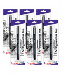 The Pointliner lines draw clean, in a rich solid black pigment ink. The durable plastic nib does not degrade or split over time like competitive brands. The ink flow is consistent is perfect for shading techniques, such as cross hatching and stippling. The waterproof ink dries quickly and integrates well with watercolor washes. Sold as a pack of 6.