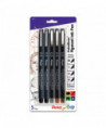 The Pointliner lines draw clean, in a rich solid black, grey, sanguine or sepia ink. The durable plastic nib does not degrade or split over time like competitive brands. The ink flow is consistent is perfect for shading techniques, such as cross hatching and stippling. The waterproof ink dries quickly and integrates well with watercolor washes. Each pack includes (5) 0.5mm pens in assorted ink colors: 2 black, 1 grey, 1 sanguine and 1 sepia.