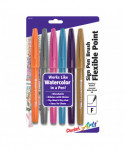 The Sign Pen Brush is a flexible point water-based dye ink pen. The richly saturated colors are fully blendable with water and other Sign Pen Brush colors. Wear-resistant, pressure-sensitive and flexible tip can be diluted with water to get a full range of values. Great for feathering, cross hatching, outlining, calligraphy and detailed line work. It will not dry out during use if left uncapped and can be cleaned with a paper towel.