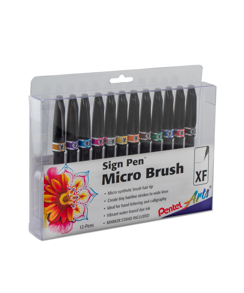 The sable-like tip offers the most control and precision anywhere. The micro-synthetic brush hair tip is perfect for highly detailed and expressive sketches, comic inking and coloring, and professional illustration. The Sign Pen Micro Brush integrates seamlessly with other Sign Pen Brushes and the Hybrid Technica. Colors included: Black, Green, Orange, Violet, Sky Blue, Yellow, Blue, Red, Brown, Pink, Gray and Ochre.