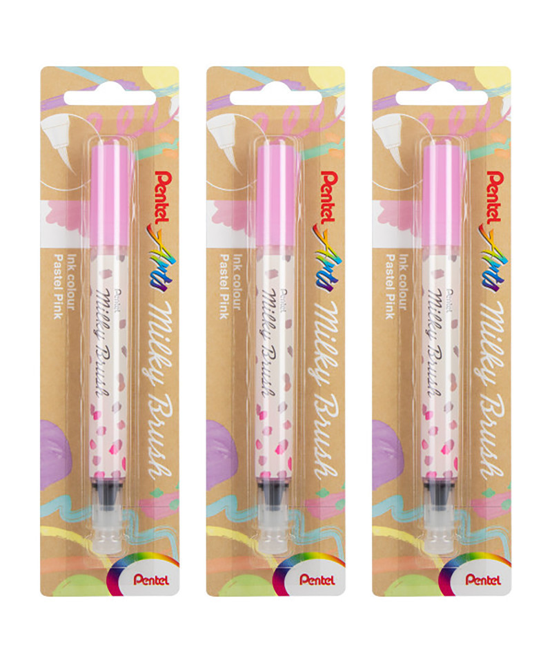 Pentel Arts Milky Brush Pen, Pastel Pink Ink, Pack of 3
