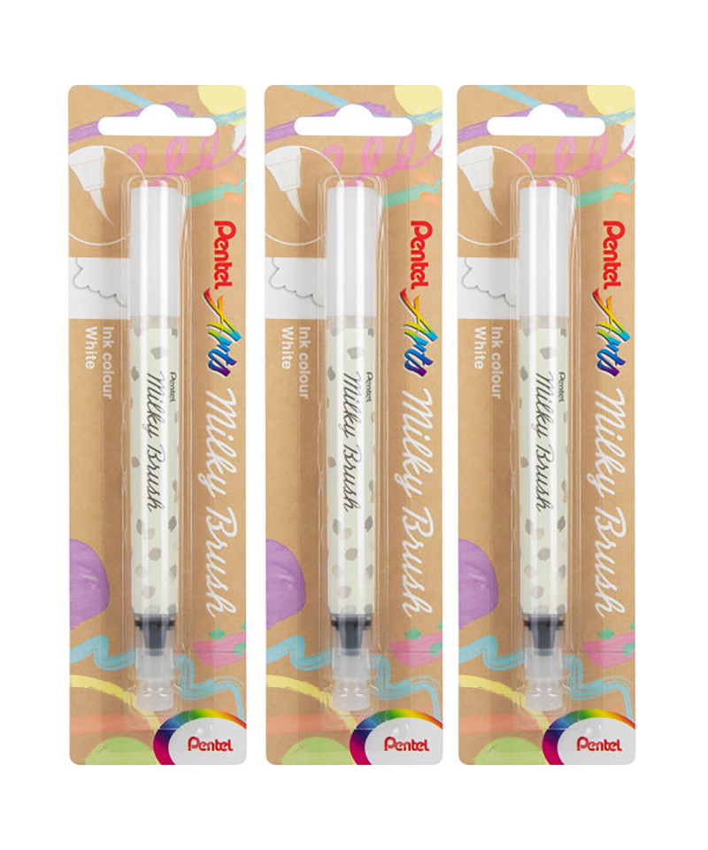 Pentel Arts Milky Brush Pen, White Ink, Pack of 3
