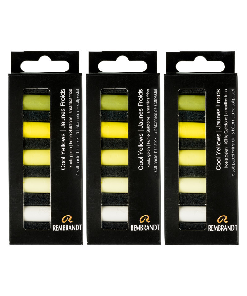 Rembrandt soft pastels are world renowned, professional-quality sticks that are manufactured with only the purest pigments and finest quality kaolin clay. They are made in The Netherlands under strict quality control standards. Each color is made with unique pigmentation formulas. These round sticks have excellent softness for beautiful color release and toning. Each set includes 5 half pastels (205,3 - 205,5 - 205,8 - 205,9, - 205,1). Sold as 3 sets for a total of 15 half pastels.