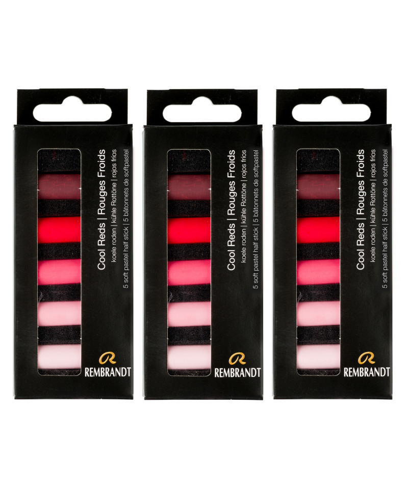 Rembrandt soft pastels are world renowned, professional-quality sticks that are manufactured with only the purest pigments and finest quality kaolin clay. They are made in The Netherlands under strict quality control standards. Each color is made with unique pigmentation formulas. These round sticks have excellent softness for beautiful color release and toning. Each set includes 5 half pastels (371,3 - 371,5 - 371,7 - 371,8 - 371,9). Sold as 3 sets for a total of 15 half pastels.