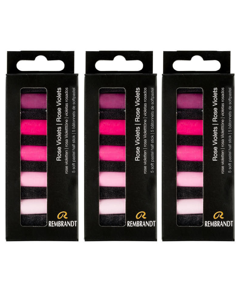 Rembrandt soft pastels are world renowned, professional-quality sticks that are manufactured with only the purest pigments and finest quality kaolin clay. They are made in The Netherlands under strict quality control standards. Each color is made with unique pigmentation formulas. These round sticks have excellent softness for beautiful color release and toning. Each set includes 5 half pastels (397,3 - 397,5 - 397,7 - 397,9 - 397,10). Sold as 3 sets for a total of 15 half pastels.