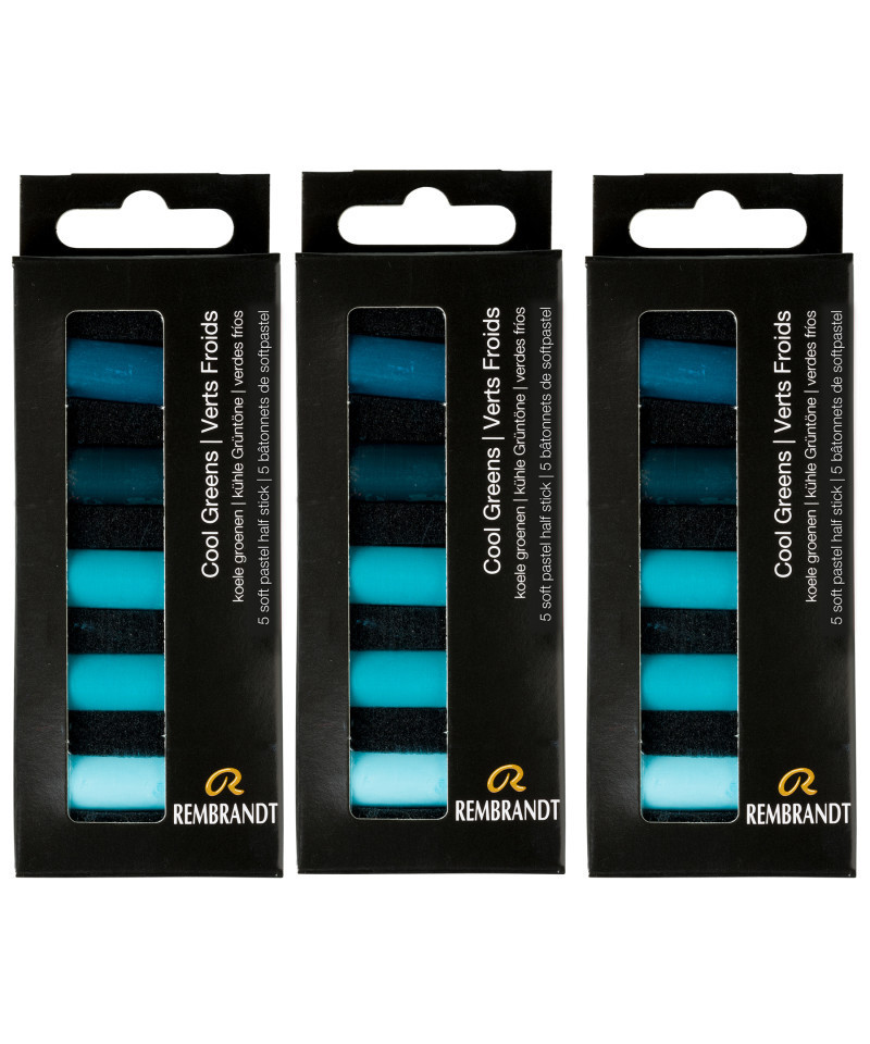 Rembrandt soft pastels are world renowned, professional-quality sticks that are manufactured with only the purest pigments and finest quality kaolin clay. They are made in The Netherlands under strict quality control standards. Each color is made with unique pigmentation formulas. These round sticks have excellent softness for beautiful color release and toning. Each set includes 5 half pastels (640,2 - 640,3 - 640,5 - 640,7 - 640,9). Sold as 3 sets for a total of 15 half pastels.