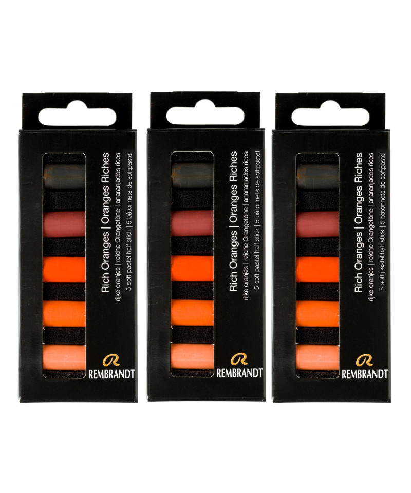 Rembrandt Soft Pastels Micro Sets, Rich Oranges Per Set, 5 Half Sticks, 3 Sets