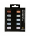 Rembrandt soft pastels are world renowned, professional-quality sticks that are manufactured with only the purest pigments and finest quality kaolin clay. They are made in The Netherlands under strict quality control standards. Each color is made with unique pigmentation formulas. These round sticks have excellent softness for beautiful color release and toning. Contents: 10 half pastels (409,8 - 409,9 - 704,8 - 704,9 - 727,8 - 727,9 - 707,8 - 707,9 - 709,8 - 709,9).