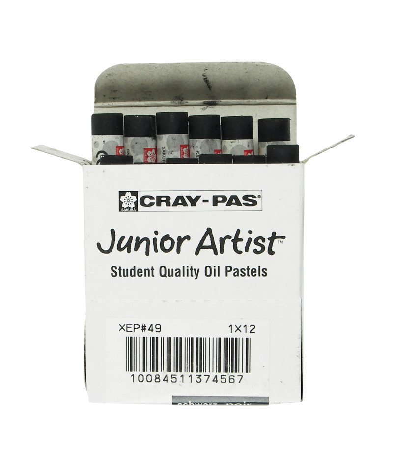 Invented in 1921, Sakura is the original inventor of oil pastels. Cray-Pas Junior Artist provides beautiful and blendable color for young hands. The best art curriculums nationwide use Cray-Pas to teach and practice art introductory techniques. Cray-Pas oil pastels can create oil paint effects, will not peel, crack or flake, are easily blendable, and are safe for children. The round shape of Cray-Pas Junior Artist is easy to hold, and are great for drawing, lettering, scratch art, and long lasting sidewalk art. Cray-Pas are excellent on paper, cardboard, and canvas. Pastels measure 8mm x 60.8mm. Contains 12 black oil pastels.