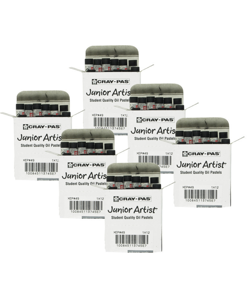 Invented in 1921, Sakura is the original inventor of oil pastels. Cray-Pas Junior Artist provides beautiful and blendable color for young hands. The best art curriculums nationwide use Cray-Pas to teach and practice art introductory techniques. Cray-Pas oil pastels can create oil paint effects, will not peel, crack or flake, are easily blendable, and are safe for children. The round shape of Cray-Pas Junior Artist is easy to hold, and are great for drawing, lettering, scratch art, and long lasting sidewalk art. Cray-Pas are excellent on paper, cardboard, and canvas. Pastels measure 8mm x 60.8mm. Each pack includes 12 black oil pastels. Sold as 6 packs for a total of 72 oil pastels.