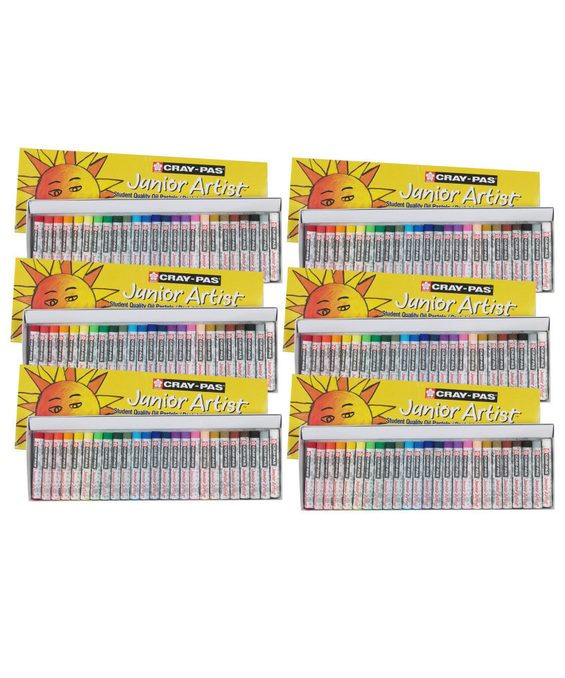 Invented in 1921, Sakura is the original inventor of oil pastels. Cray-Pas Junior Artist provides beautiful and blendable color for young hands. The best art curriculums nationwide use Cray-Pas to teach and practice art introductory techniques. Cray-Pas oil pastels can create oil paint effects, will not peel, crack or flake, are easily blendable, and are safe for children. The round shape of Cray-Pas Junior Artist is easy to hold, and are great for drawing, lettering, scratch art, and long lasting sidewalk art. Cray-Pas are excellent on paper, cardboard, and canvas. Pastels measure 8mm x 60.8mm. Each pack includes 25 oil pastels in assorted colors. Sold as 6 sets for a total of 150 oil pastels.