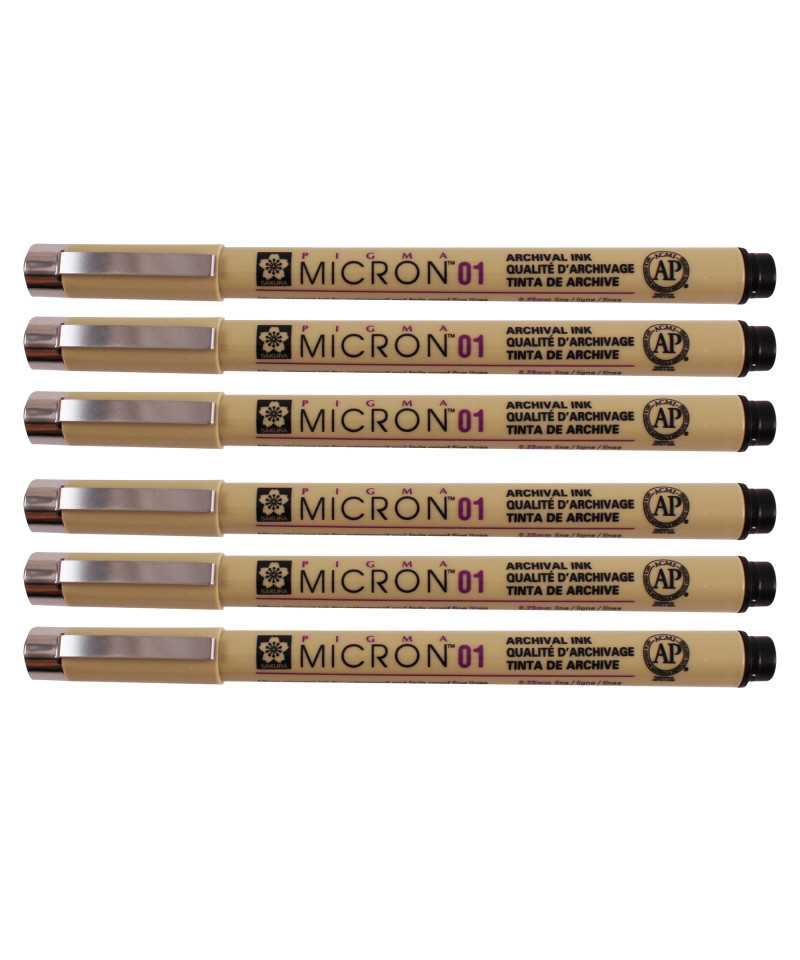 Sakura Pigma Micron Pen, Black, 0.25mm Size 01, Pack of 6