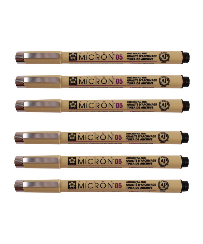 Sakura Pigma Micron Pen, Black, 0.45mm Size 05, Pack of 6