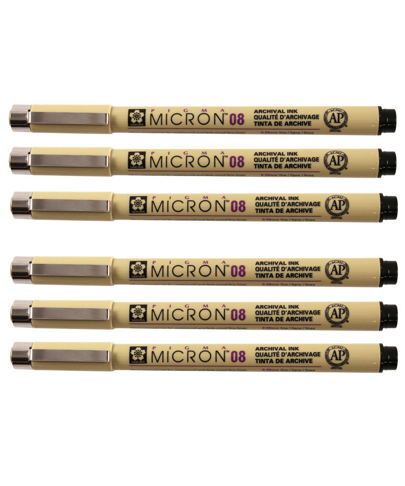 Sakura Pigma Micron Pen, Black, 0.50mm Size 08, Pack of 6