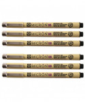 Pigma Micron pens are waterproof and permanent fineliners that are loyally used by designers, scientists, archivists, architects, Manga artists, cartoonists, illustrators and hobbyists. The fine nib makes this pen ideal for creating both technical and artistic drawings. The fineliners have a protective metal sleeve around the extended tip to give extra control and increased resilience when used with drawing aids such as rulers. This permanent, fade resistant, chemically stable, pigment-based ink will not bleed or run if liquids are spilled on or applied to the document after the ink has dried. Perfect for legal situations, Pigma ink is nearly impossible to alter on documents, in log books, or on checks. Architects, archivists, anthropologists, entomologists and laboratories depend on Pigma Micron for record keeping. Pigma Micron is the first disposable technical pen using archival pigmented ink. It does not smear, feather, or bleed through on most paper. Sold as a pack of 6. Specifications: Working temp.: 5˚C - 40˚C Ink type: Water-based pigment ink Size: 135 mm