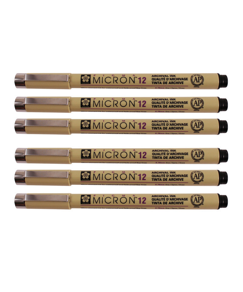 Pigma Micron pens are waterproof and permanent fineliners that are loyally used by designers, scientists, archivists, architects, Manga artists, cartoonists, illustrators and hobbyists. The fine nib makes this pen ideal for creating both technical and artistic drawings. The fineliners have a protective metal sleeve around the extended tip to give extra control and increased resilience when used with drawing aids such as rulers. This permanent, fade resistant, chemically stable, pigment-based ink will not bleed or run if liquids are spilled on or applied to the document after the ink has dried. Perfect for legal situations, Pigma ink is nearly impossible to alter on documents, in log books, or on checks. Architects, archivists, anthropologists, entomologists and laboratories depend on Pigma Micron for record keeping. Pigma Micron is the first disposable technical pen using archival pigmented ink. It does not smear, feather, or bleed through on most paper. Sold as a pack of 6.