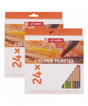 This set of colored pencils offers you a great selection of colors to create various drawings with. Each set includes 24 pencils (105 Titanium White – 224 Naples Yellow Red – 275 Primary Yellow – 270 Azo Yellow Deep – 276 Azo Orange – 311 Vermilion – 334 Scarlet – 357 Rose – 545 Red Violet – 376 Purper – 548 Blue Violet – 504 Ultramarine – 564 Brilliant Blue – 660 Turquoise Green Light – 615 Emerald Green – 675 Phthalo Green – 617 Yellow Green – 674 Phthalo Green Deep – 620 Olive Green – 227 Yellow Ochre – 411 Burnt Sienna – 403 Vandyke Brown – 704 Neutral Gray – 701 Ivory Black). Talens Art Creation colored pencil sets offer a balanced range of colors, all made from high-quality pigments that provide excellent color transfer and are durable in use. The range of colors is very suitable for layering, or gradually building up the color intensity in your drawing. The pencils come in cardboard packaging with a sturdy tray to keep your pencils organized. The packaging is fully recyclable and provides good protection. Sold as 2 sets for a total of 48 pencils.