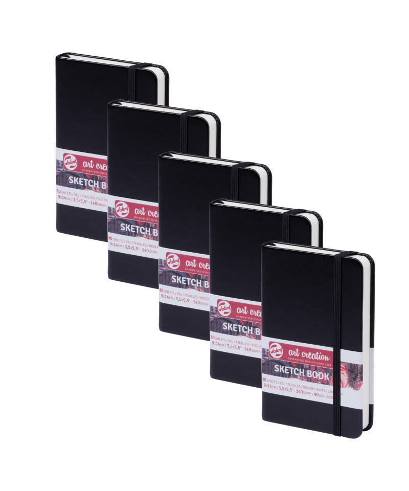Talens Art Creation Sketchbook, 80 Sheets, 90lbs, Black Cover, 3.5" x 5.5", Pack of 5