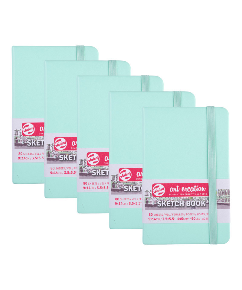 Talens Art Creation Sketchbook, 80 Sheets, 90lbs, Fresh Mint Cover, 3.5" x 5.5", Pack of 5