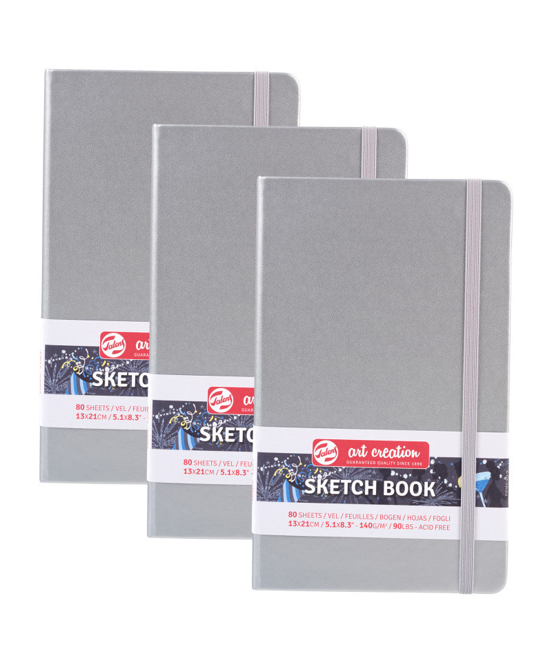 Talens Art Creation Sketchbook, 80 Sheets, 90lbs, Shiny Silver Cover, 5.1" x 8.3", Pack of 3
