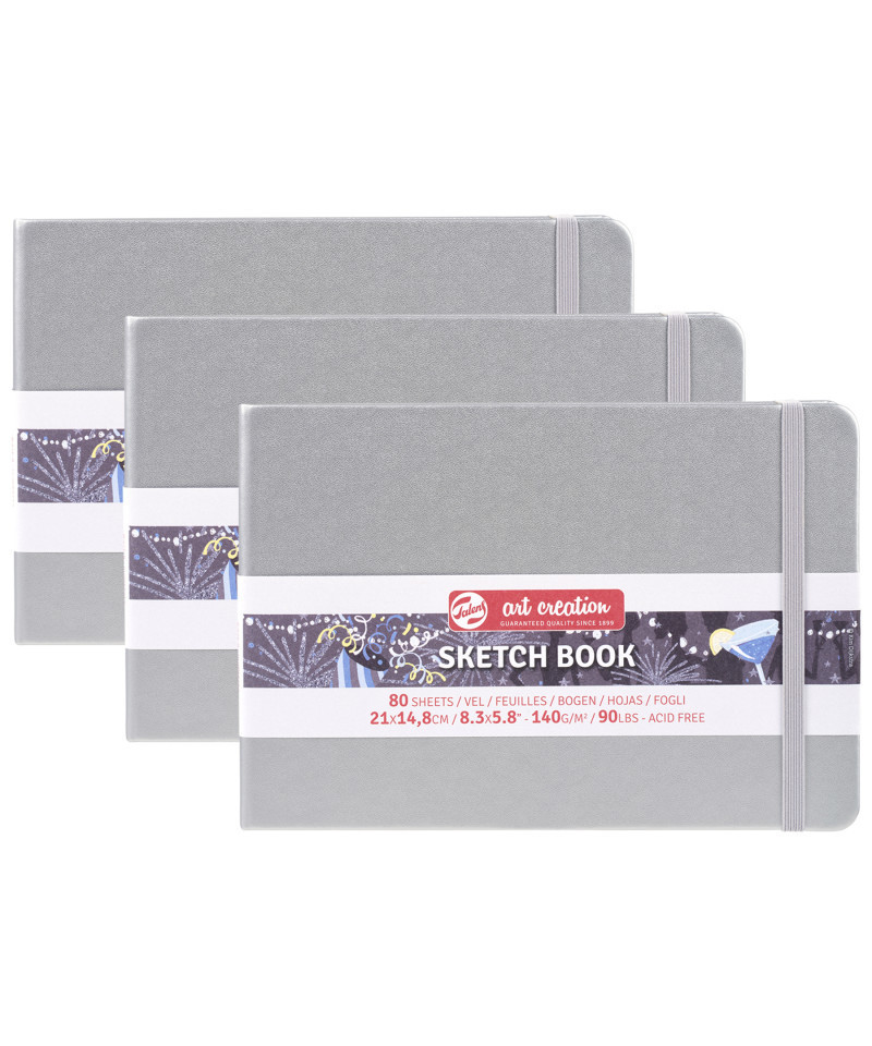 Talens Art Creation Sketchbook, 80 Sheets, 90lbs, Shiny Silver Cover, 8.3" x 5.8" (A5), Pack of 3