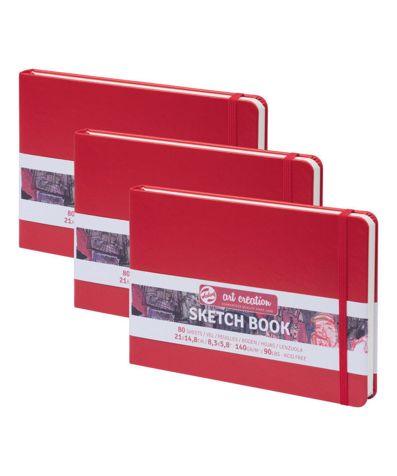 Talens Art Creation Sketchbook, 80 Sheets, 90lbs, Red Cover, 8.3" x 5.8" (A5), Pack of 3