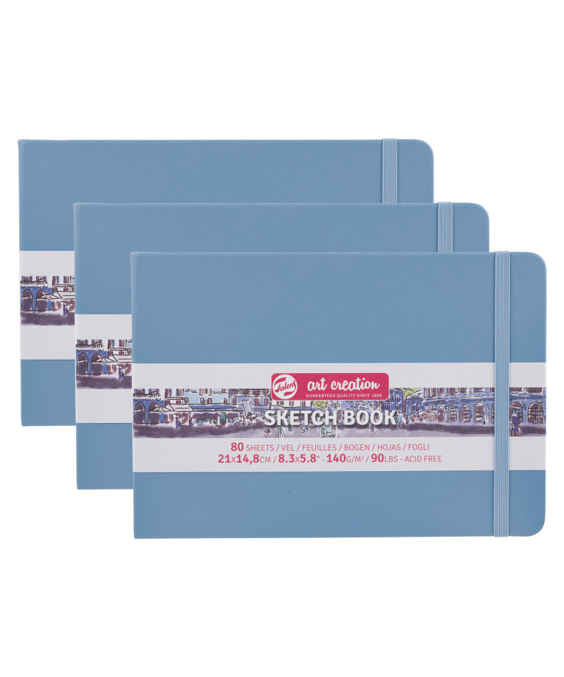 Talens Art Creation Sketchbook, 80 Sheets, 90lbs, Lake Blue Cover, 8.3" x 5.8" (A5), Pack of 3