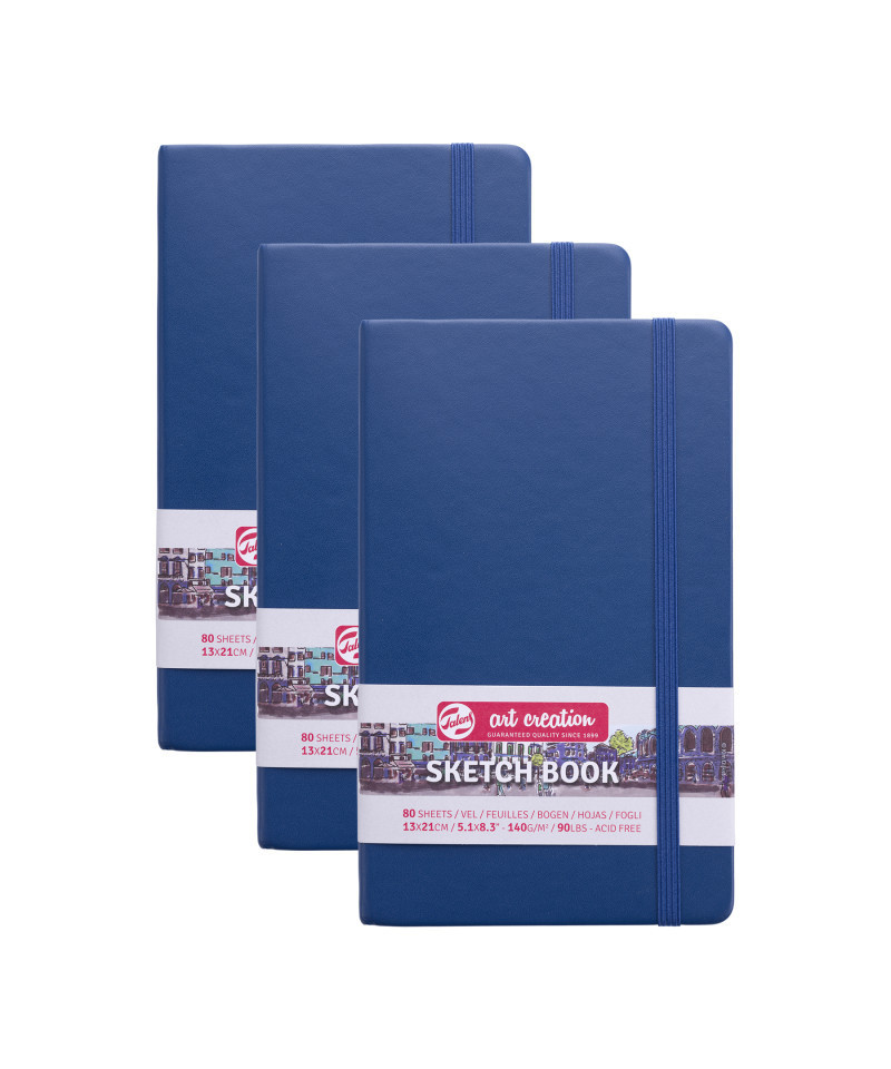 Talens Art Creation Sketchbook, 80 Sheets, 90lbs, Navy Blue Cover, 5.1" x 8.3", Pack of 3