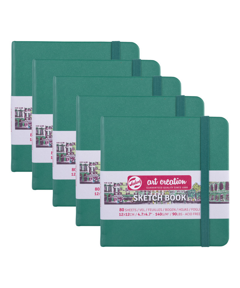 Talens Art Creation Sketchbook, 80 Sheets, 90lbs, Forest Green Cover, 4.7" x 4.7", Pack of 5