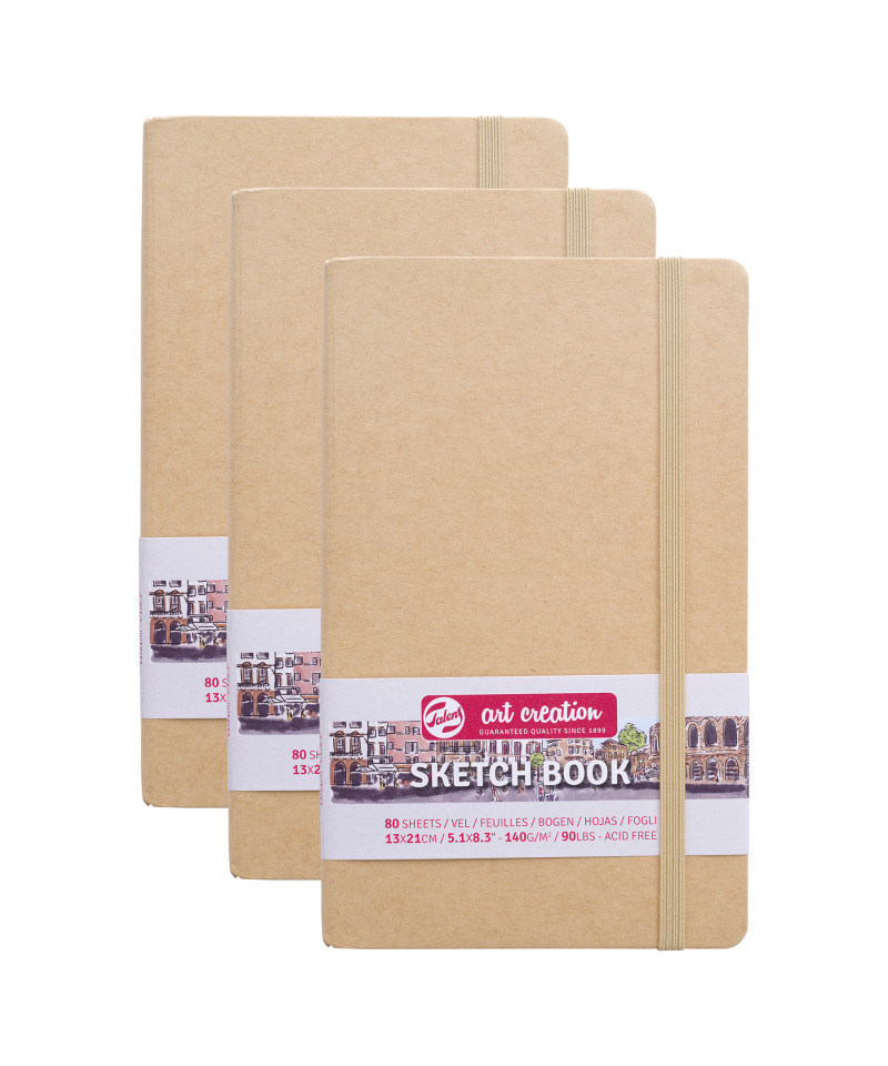 Talens Art Creation Sketchbook, 80 Sheets, 90lbs, Kraft Cover, 5.1" x 8.3", Pack of 3