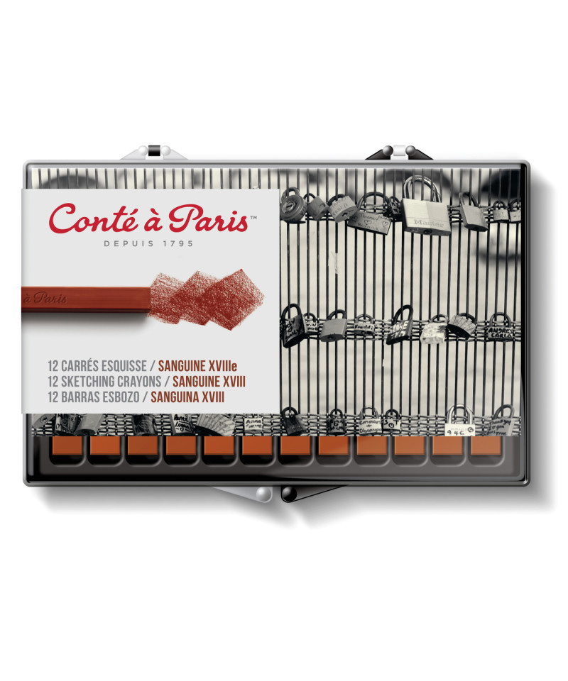 This drawing essential offers limitless creativity. With its vibrant red color, the Carré Conté à Paris Esquisse Sanguine is a pastel made from natural pigments that offers rich pigmentation for creating vibrant monochrome works. The rich pigment content gives them a unique texture ideal for precise or quick sketches, monochrome or polychrome work. Their soft texture facilitates application on medium-weight supports, offering an exceptional and incomparable result. The Carré Pastel, with its unique shape, allows for versatile use: precise lines thanks to the edges, powdery backgrounds and flat areas thanks to the edge. They are mixable with oil or acrylic paints and can be preserved with fixative spray. 4 different shades are available in sanguine (a bright earth red).