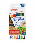 Bring vivid color and precision to your artwork with edding 5100 Series Acrylic Paint Markers, Medium Tip, Basic Colors, Set of 5. These professional-quality markers feature medium bullet tips that provide smooth, consistent lines perfect for outlining, filling, and detailed painting. The highly pigmented, water-based acrylic ink offers rich, opaque coverage on canvas, wood, metal, stone, and paper, drying quickly to a durable matte finish. Ideal for mixed-media, fine art, and craft projects, the set includes five classic basic colors suited for all creative applications. With excellent lightfastness and reliable ink flow, edding 5100 Series markers deliver professional-grade performance, making them a must-have tool for artists, designers, and students alike.