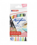 Add a soft, sophisticated touch to your artwork with edding 5100 Series Acrylic Paint Markers, Medium Tip, Pastel Colors, Set of 5. These premium-quality markers feature medium bullet tips for smooth, consistent color application on a variety of surfaces, including canvas, wood, paper, metal, and stone. The highly pigmented, water-based acrylic ink provides opaque, matte coverage that dries quickly and resists fading. Perfect for delicate details, subtle highlights, or modern color palettes, the set includes five gentle pastel shades that enhance both fine art and craft projects. With reliable ink flow and long-lasting performance, edding 5100 Series markers deliver professional results for artists, designers, and students seeking precise control and beautiful soft tones.