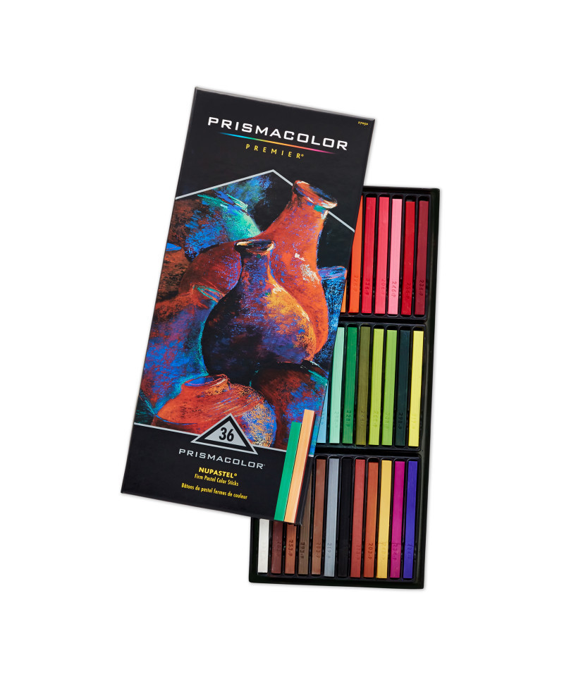 Prismacolor Premier NuPastel Firm Pastel Sticks resist breaking but maintain the same rich, creamy texture needed for blending and shading. That means you enjoy 36 vividly smooth shades with less powdery mess than traditional pastels. Perfect for creating illustrations, tightly rendered drawings and even coloring books, the Prismacolor pastels can be dulled for full coverage or sharpened to a fine point. For use both wet and dry, you can create decadent layers and shimmering effects.