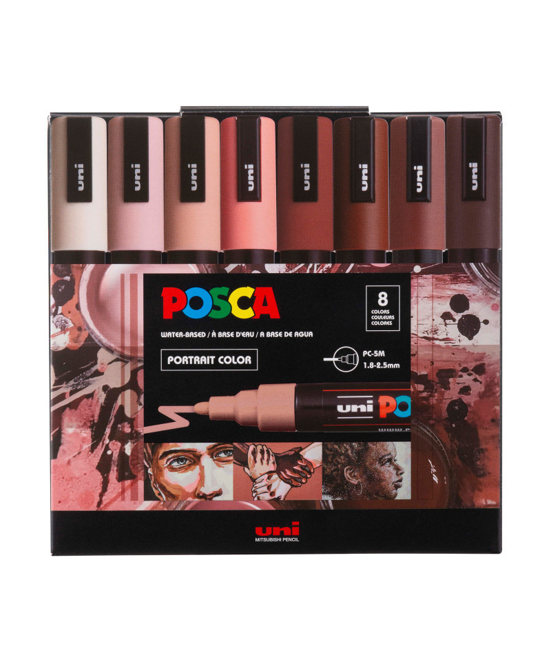 Uncap your imagination with uniball's POSCA PC-5M, the ideal water-based paint marker for customizing or decorating any type of surface. The medium 1.8-2.5mm tip is reversible, always ensuring a clear, precise paint line and beautiful color. The PC-5M marker suits all types of users from artists and creative professionals to hobbyists and decorators to surfers and skaters! Everyday creatives and budding artists use this paint marker for coloring, line drawing and ornamentation on a multitude of surfaces. Dilute, mix or blend the paint ink to create stunning effects for your indoor and outdoor projects. POSCA paint ink is permanent on porous surfaces and erasable on most smooth non-porous materials. Its ease of use makes this paint marker ideal for beginners to explore their creativity. Portrait colors included: Dark Brown, Cacao Brown, Brown, Chestnut, Coral Pink, Powder Pink, Satin Pink, Beige.